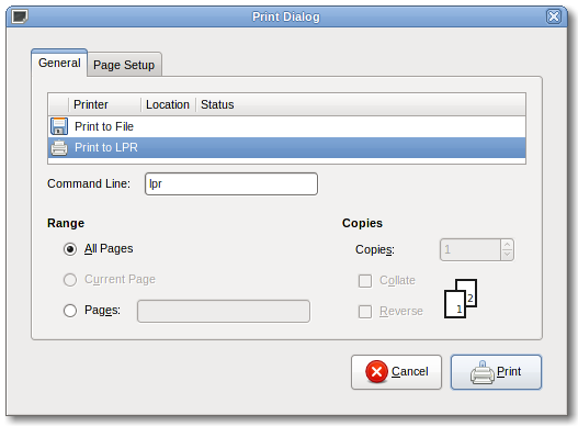 GtkPrintUnixDialog implements a print dialog for platforms which don't provide a native print dialog, like Unix. It can be used very much like any other GTK+ dialog, at the cost of the portability offered by the high-level printing API